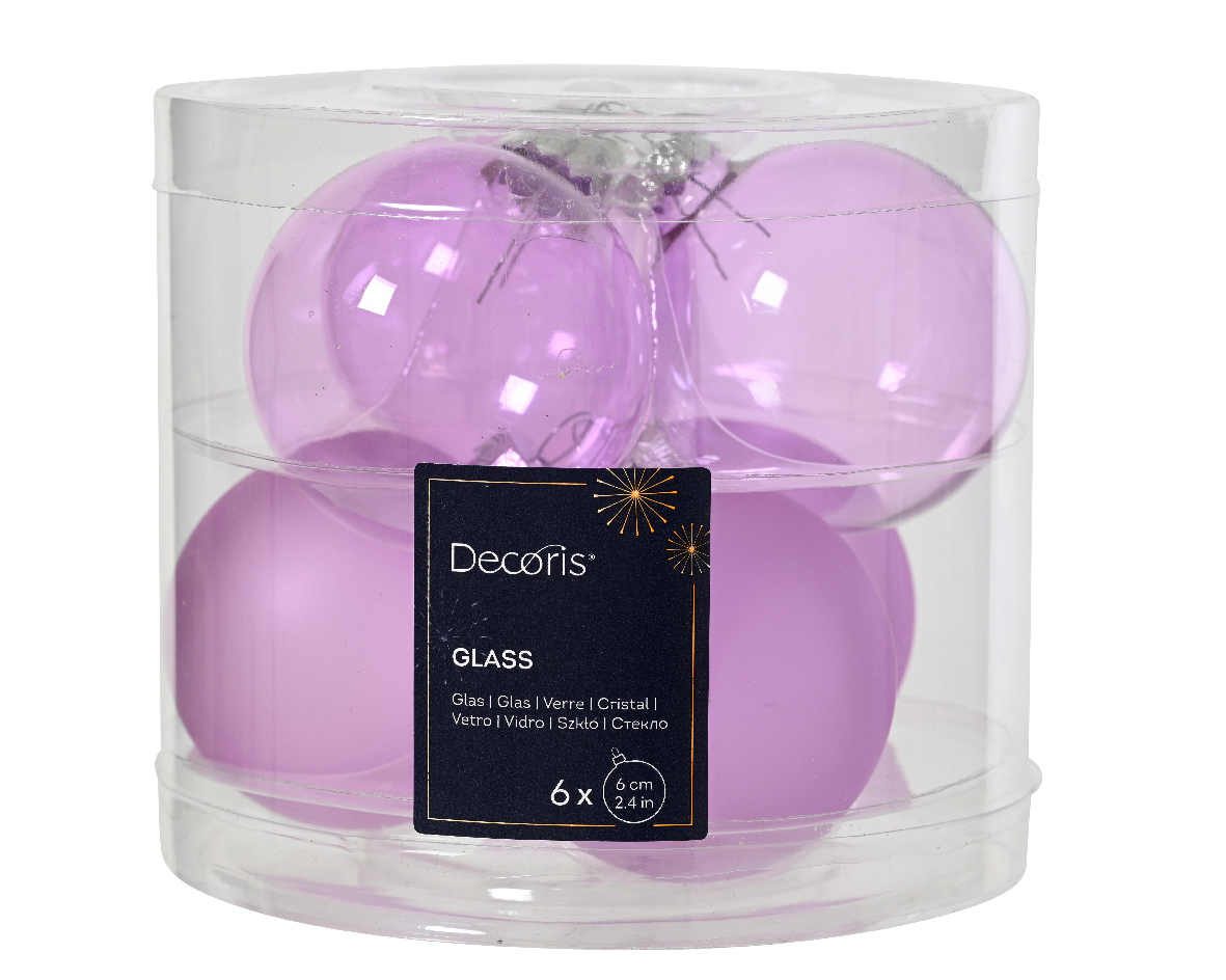 Decoris Glazen Kerstballen – Fris Lila | Set van 6 stuks (Ø 8 cm)