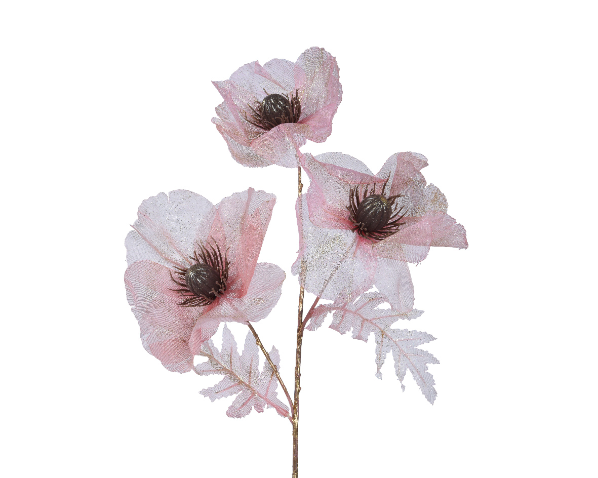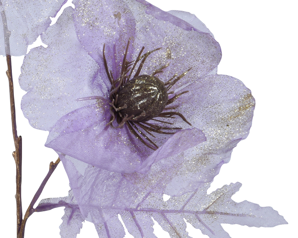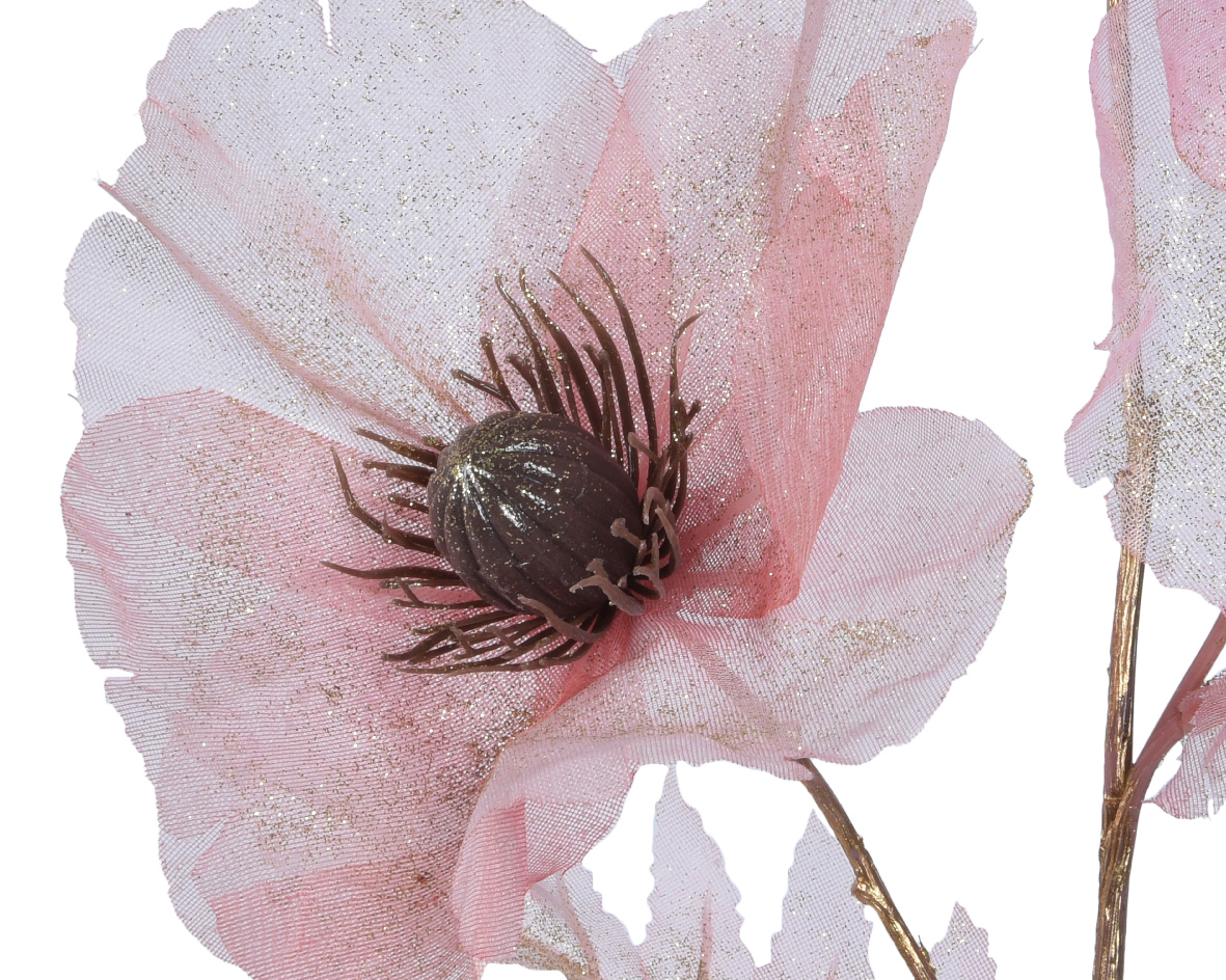 Met 3 grote bloemen per tak, voorzien van glitterafwerking