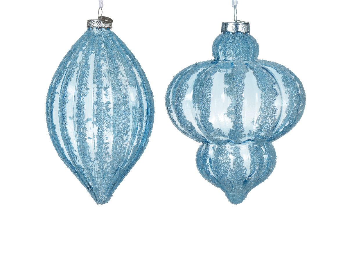 Frosted Elegance – Glazen Kersthanger IJsblaauw met Ijskristal-effect