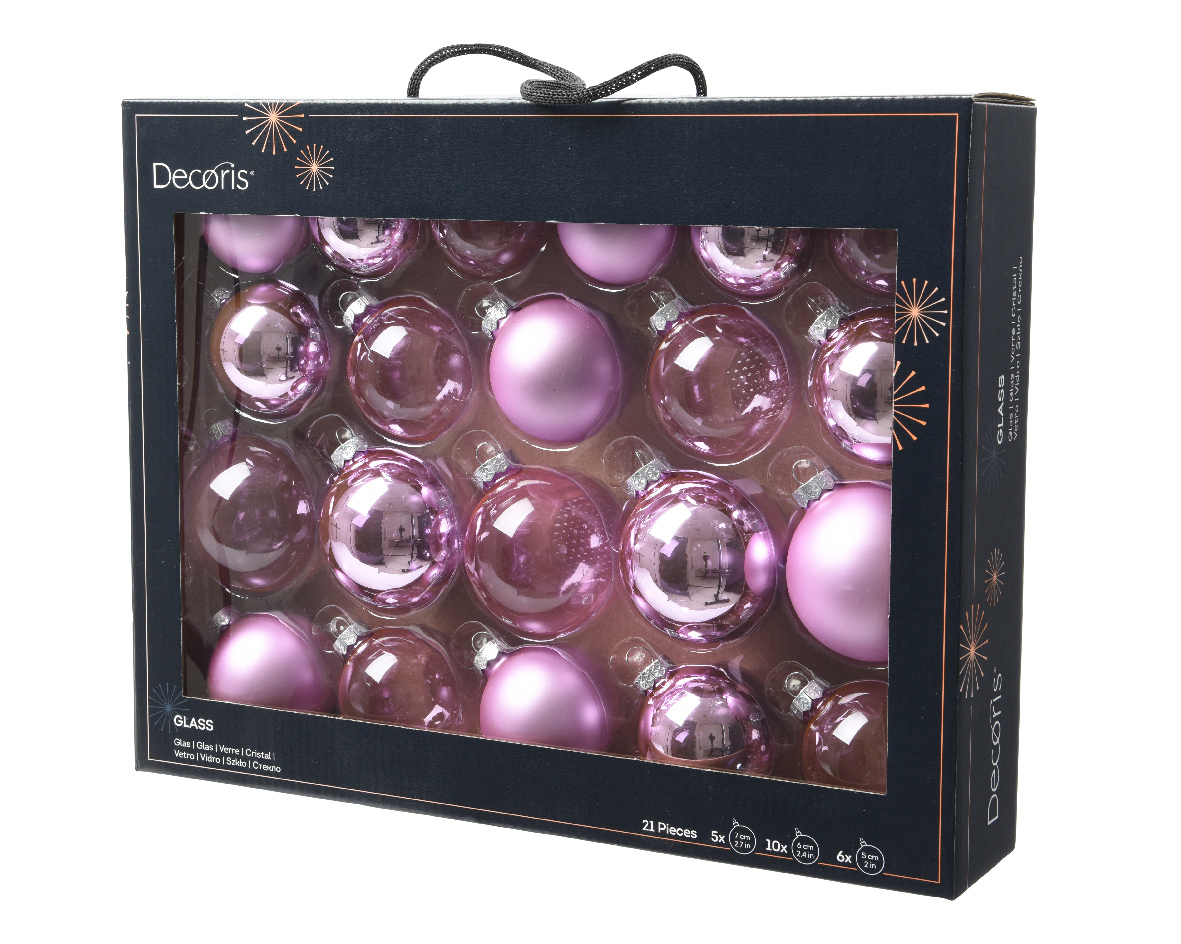 Decoris Kerstballen Set – 21-delig – Glas – Roze