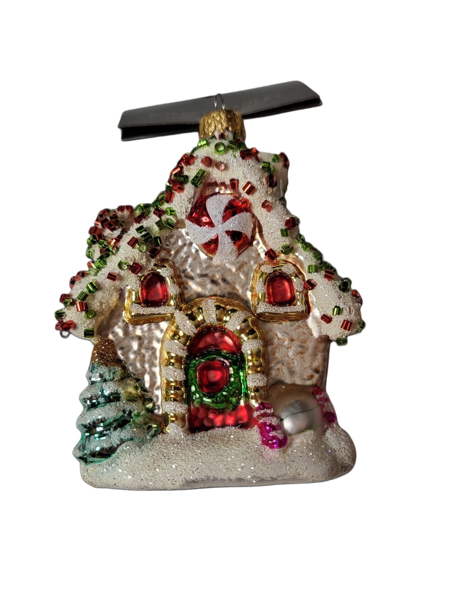 Dit schattige kersthuisje is een charmant ornament voor in de kerstboom. Met vrolijke rode, groene en gouden accenten brengt het een warme en feestelijke sfeer. Het gedetailleerde ontwerp maakt het tot een opvallend en liefelijk decoratiestuk, perfect om de boom een extra gezellig tintje te geven. Een tijdloze toevoeging aan de kerstversiering.