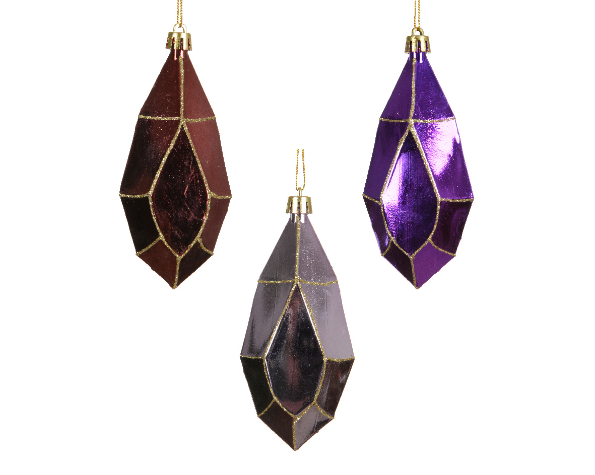 Voeg een stijlvolle en chique touch toe aan je kerstdecor met deze glanzende diamantvormige kerstornamenten. Elk ornament is ca. 12 cm lang en prachtig afgewerkt met gouden lijnen voor een luxe uitstraling.