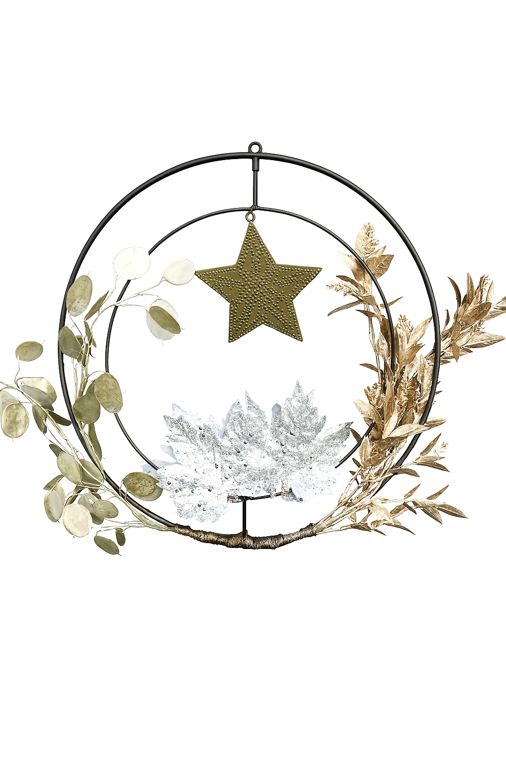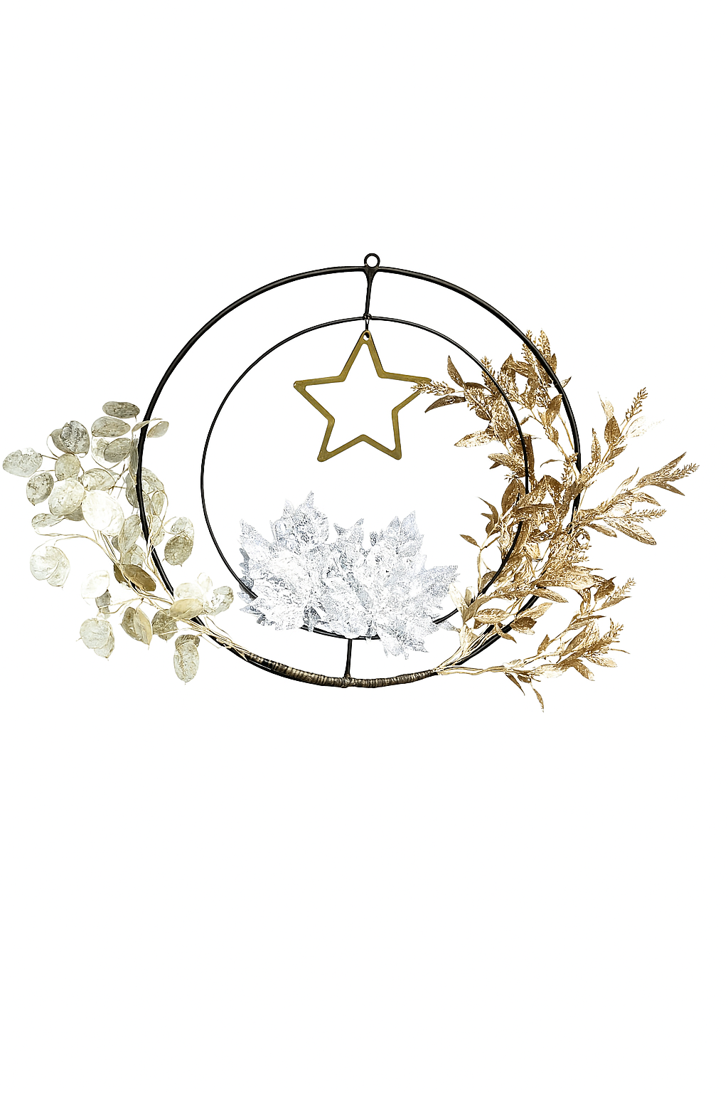 Breng sfeer in huis met deze elegante metalen krans, perfect voor de feestdagen én als tijdloze decoratie.
