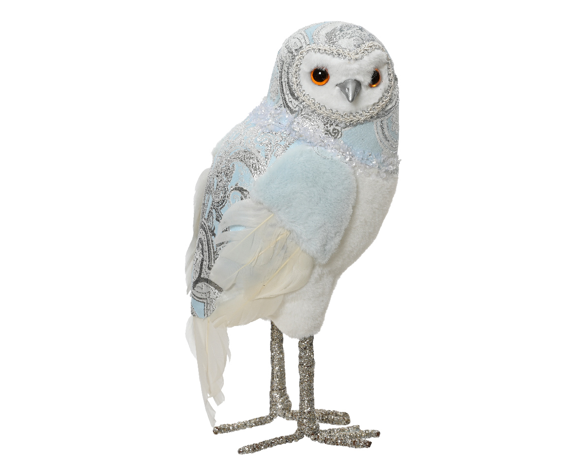 Decoratieve Uil – Wit, IJsblauw en Zilveren Accenten (25 cm)